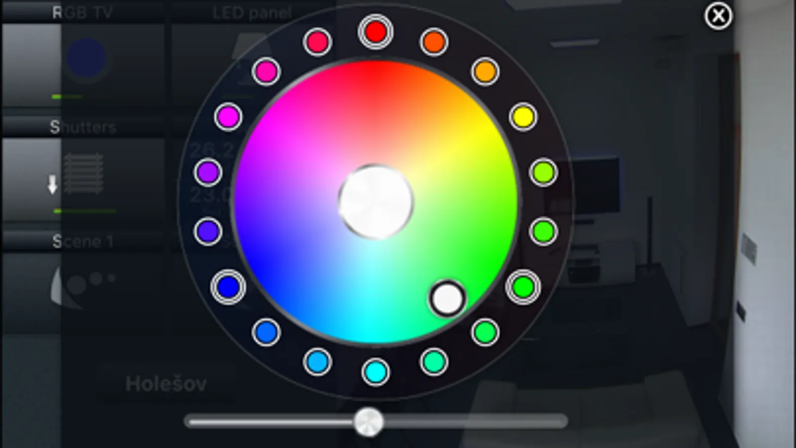 - RGB TV – short presses of the icon are used to switch the RGB LED strip behind the TV, RGB icon also includes the option of a long press, which brings up the dialog window for setting the color of the RGB LED strip