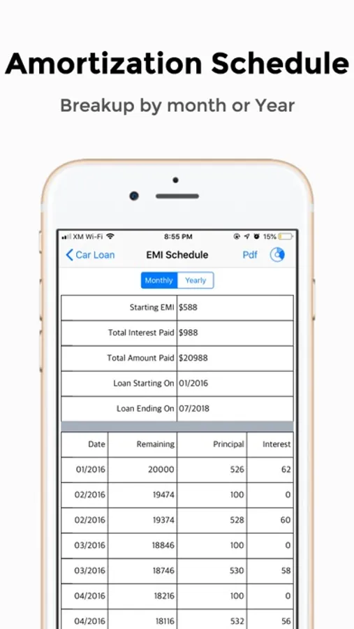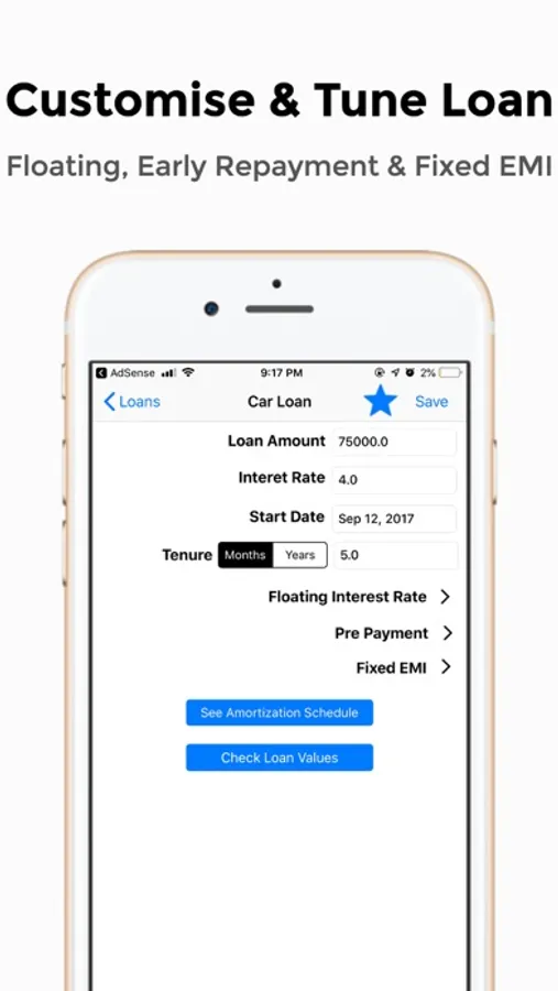 App calculates the EMI(equated monthly instalment) for the given loan amount. App shows the amortisation schedule showing date, interest, principal & balance outstanding for each month. App is very flexible and meets real world scenarios with the following features.