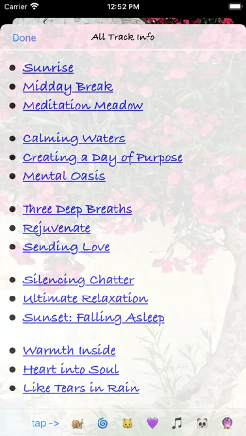 The short tracks in this app can help you experience the benefits of meditation even when you feel short on time. Using them to practice quieting your mind will help you do so anytime. Even just taking a few deep breaths can shift your energy and bring you to a more peaceful place.