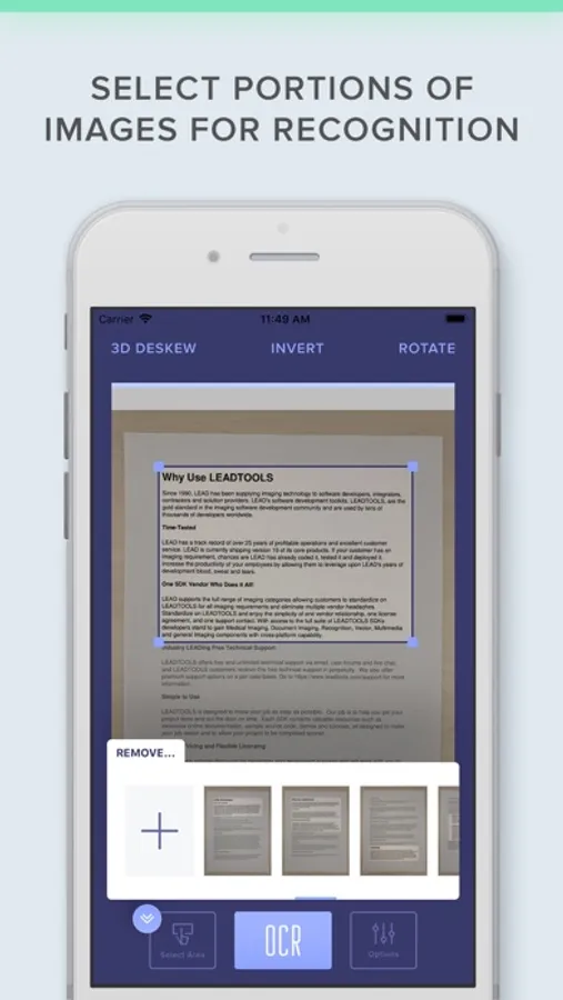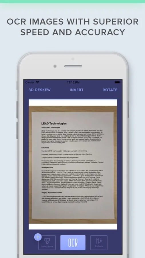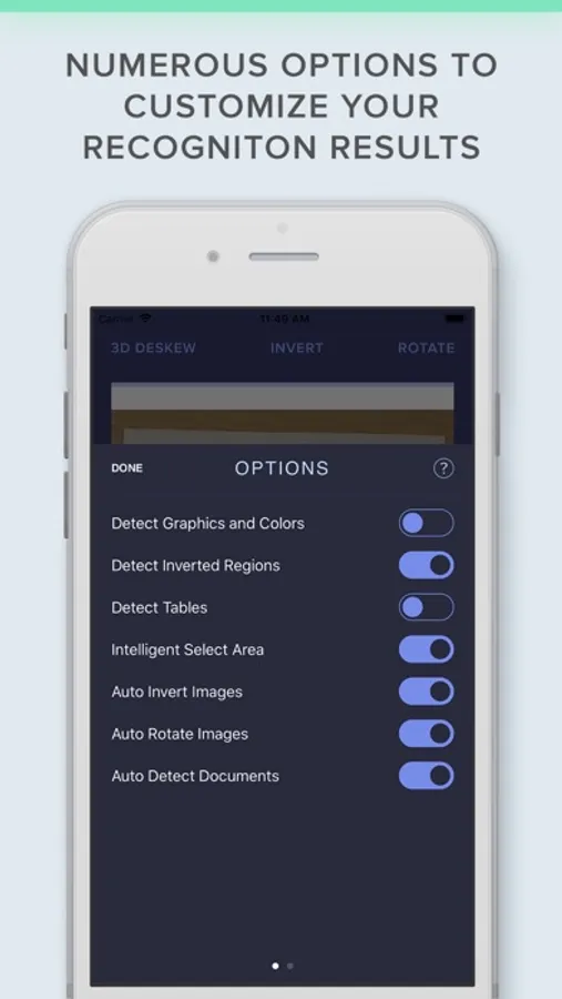• Numerous options for optimizing text recognition including Invert, Rotate, and 3D Deskew