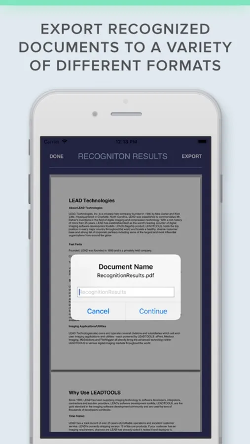 • Convert and export images to a variety of document formats, including: PDF, DOCX, Text, SVG, and many more.