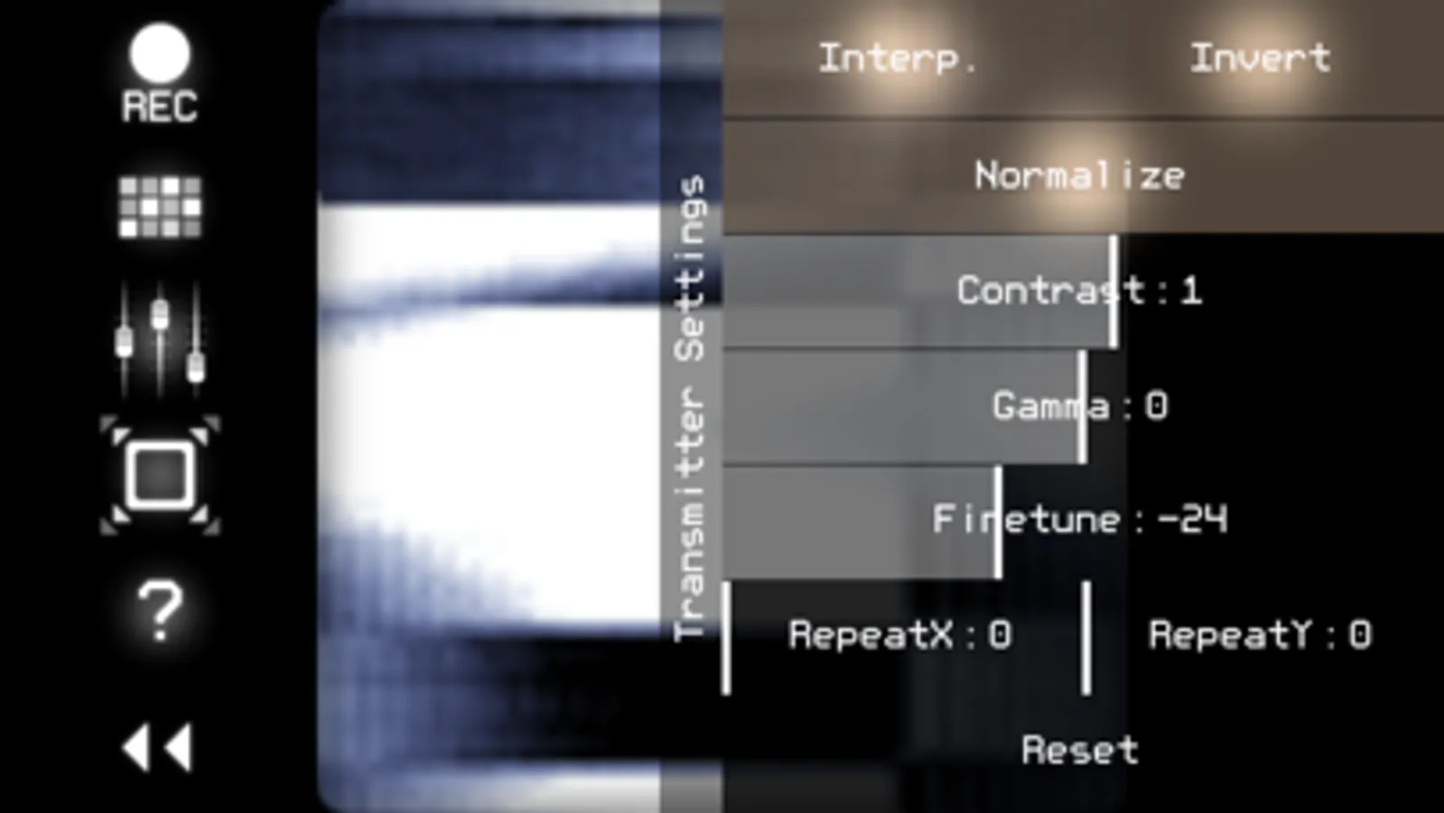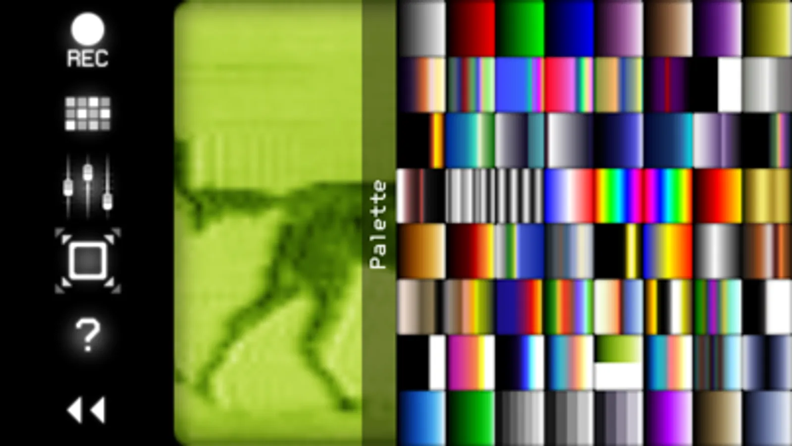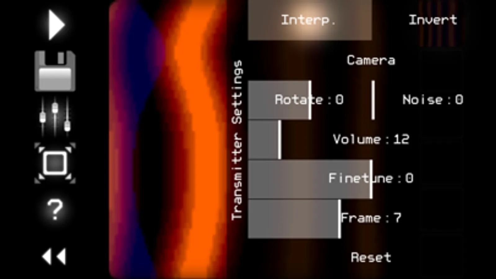 * Receiver converts the sound (from microphone or Line-in input) back to video. You can set the color palette for this video, and record it to animated GIF file.