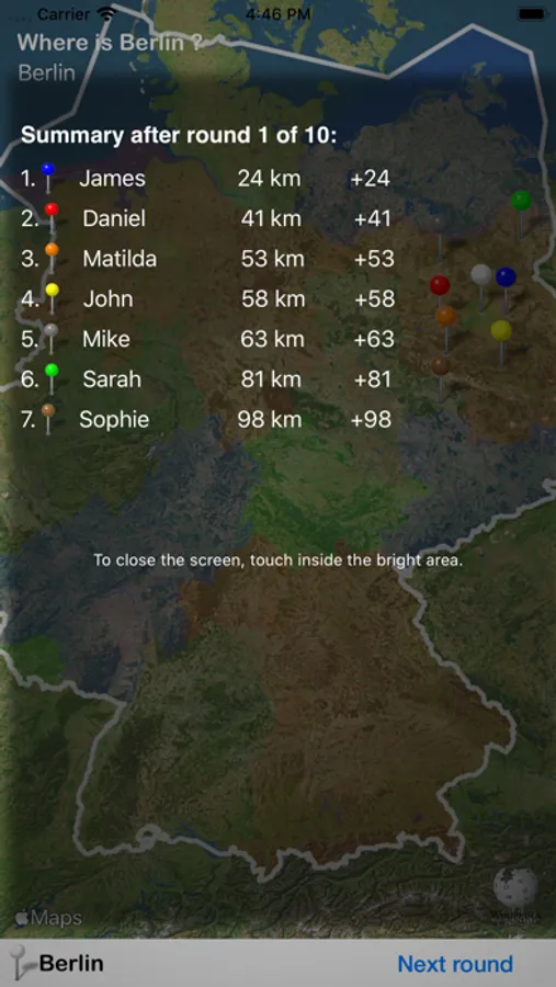 In this game you determine the geographic location of towns and cities in Germany as precisely as possible. You will be asked to define the location of a place using a marking pin on a map. The closer your guess is to the real location, the less miles will be taken into consideration and your chances for winning the game increase.