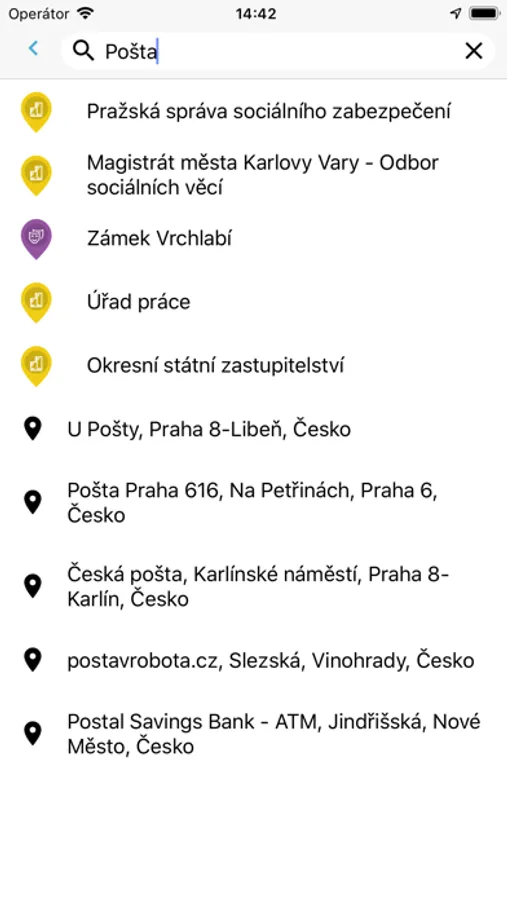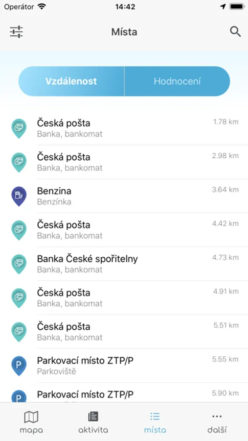 Všechna místa jsou kategorizována dle charakteru a účelu.