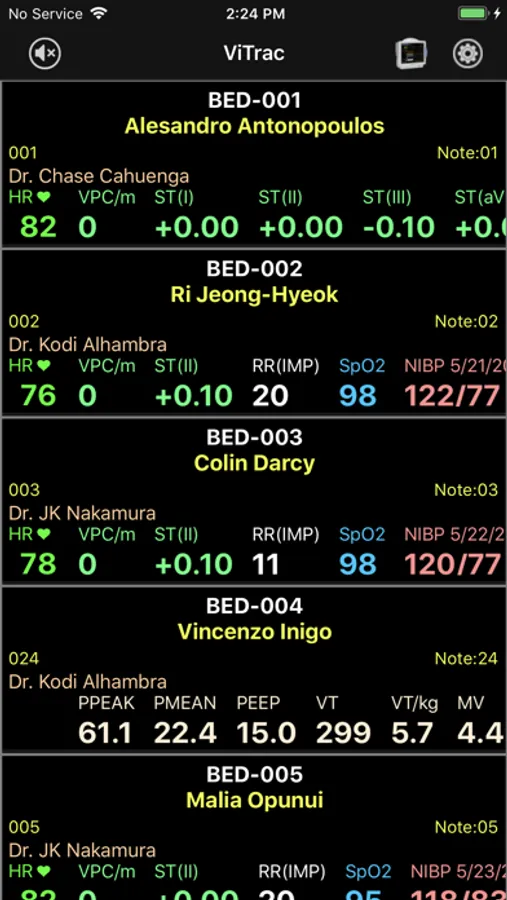 ViTrac™ provides a robust and easy-to-use user interface, which allows viewing of multiple patients’ waveforms, vital signs and stored patient information such as: