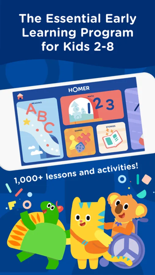 Expert-Designed, Kid-Powered, Playful Learning — Explore HOMER’s essential early learning app made to help kids build the confidence they need for school and life. Thoughtfully made educational games for kids aged 2-8. From preschool to kindergarten, HOMER is your child’s education support platform.