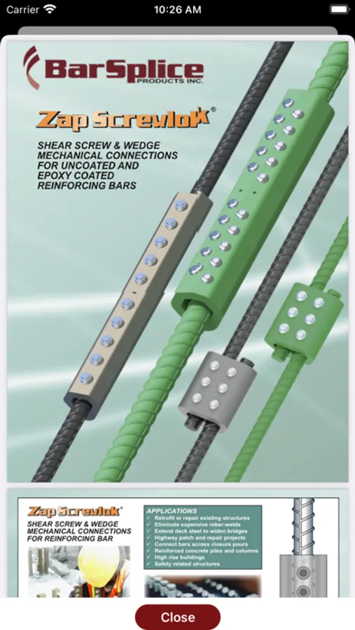 Barsplice Products, Inc. offers customers' a broad range of engineered mechanical splice systems for the benefit of the reinforced concrete construction industry and ACI 318 Type 1 and Type 2 splicing applications. This mobile app will give you access to helpful information regarding our products right at your fingertips; anytime, anywhere.