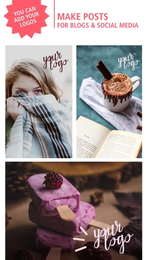 • Add your logo to your photos: With Typic you can add up to 4 versions of your company or personal logo, store them in the app, and use them to sign all your photos. This cool feature is great for business, you'll be able to make your own brand stand out on every photo you make!