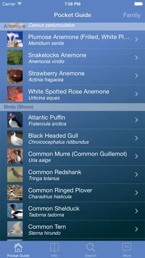• Pinch to Zoom high quality image for each species