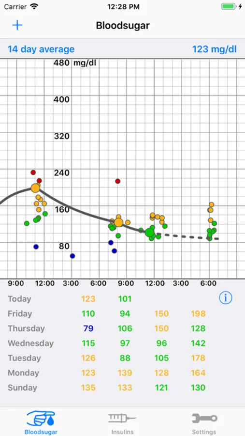 - get a clear overview of your daily and long-term trends in blood sugar levels and insulin doses, for yourself or for your doctor