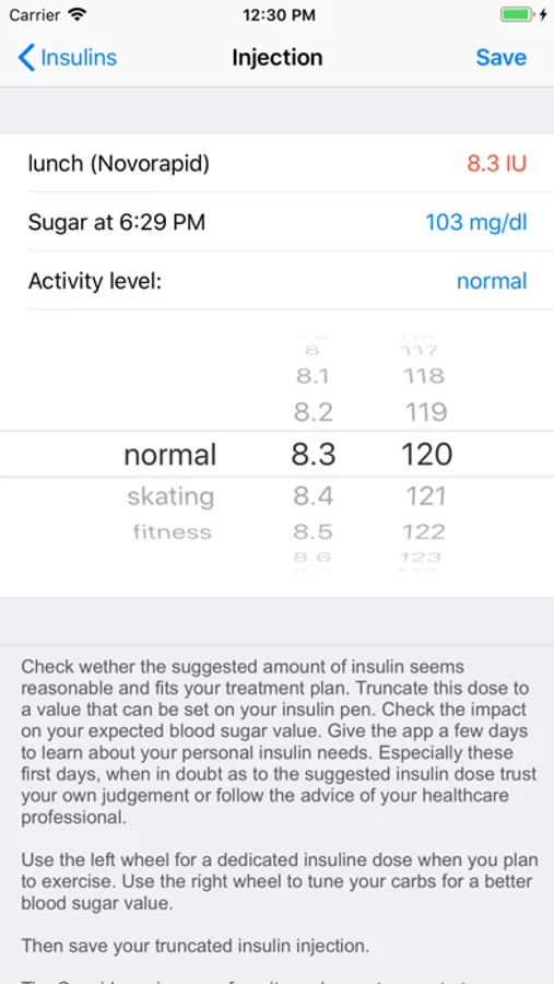 SugarPal Diabetes Manager may help you keeping your blood sugar level constant. Enter your values and this self-learning app calculates the correct insulin dose based on your personal blood sugar trends and targets.