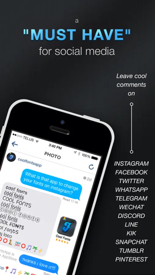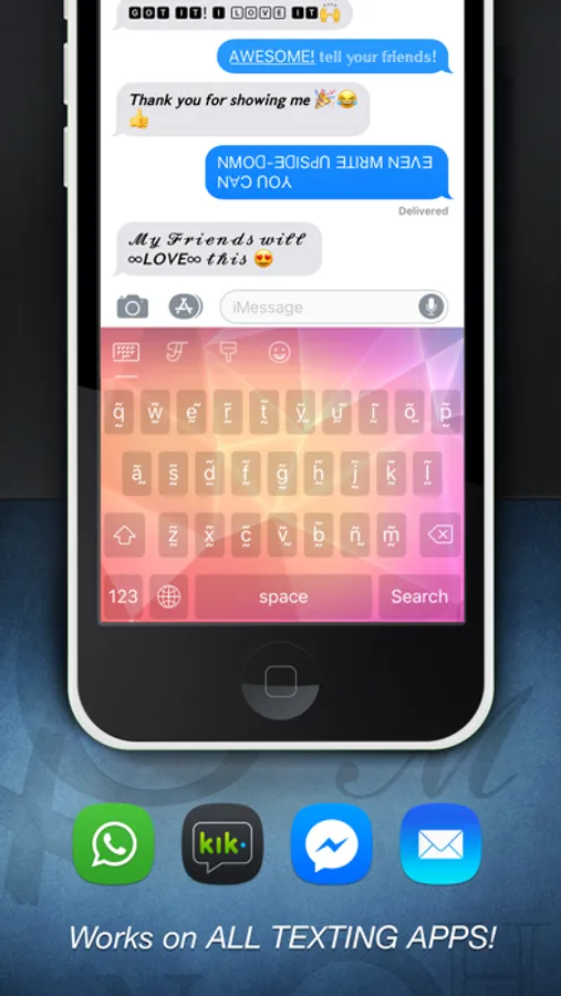 Customize your device with tons of different fonts that can be used everywhere you can type a message (Email, iMessage,, whatsapp, Line, Snapchat, WeChat, Kik ...)