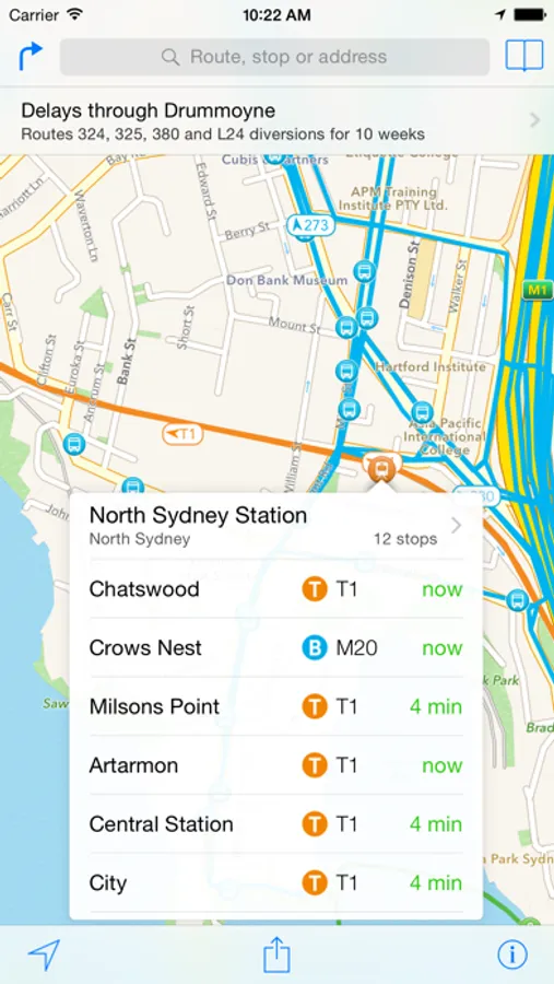 • Service interruption information for Sydney Trains services and stations automatically shown as relevant