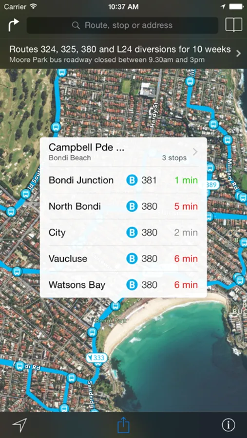 • Real-time due out information and live vehicle location tracking in Sydney, Melbourne, San Francisco, Los Angeles, New York City, Toronto, Portland, Brisbane, Adelaide and Christchurch*