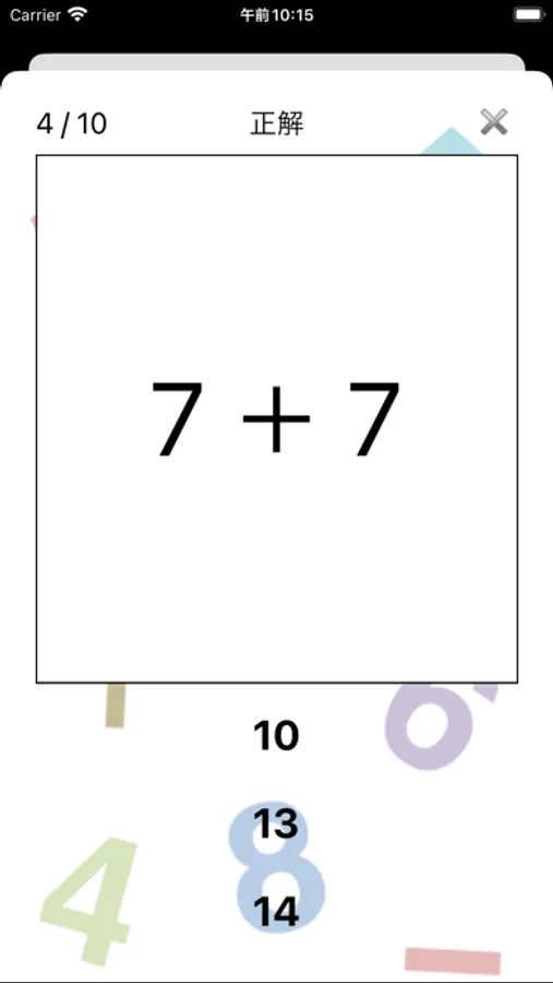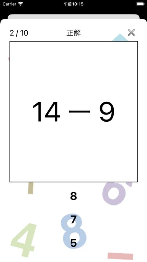 A "calculation card" is a study application for mastering fundamental calculation. You choose the answer regarded as right as the numerical calculation displayed at random from three candidates. We announce you a correct answer to sound. After all the lessons finish, the number of correct answers and time are displayed.