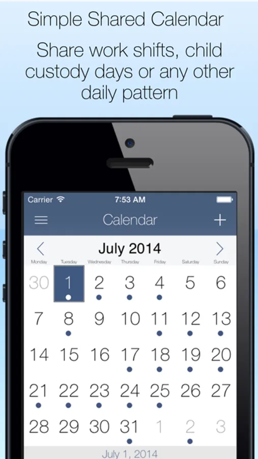 Shared Calendar (formally Custody Calendar) is a simple one entry per day shared calendar application.
