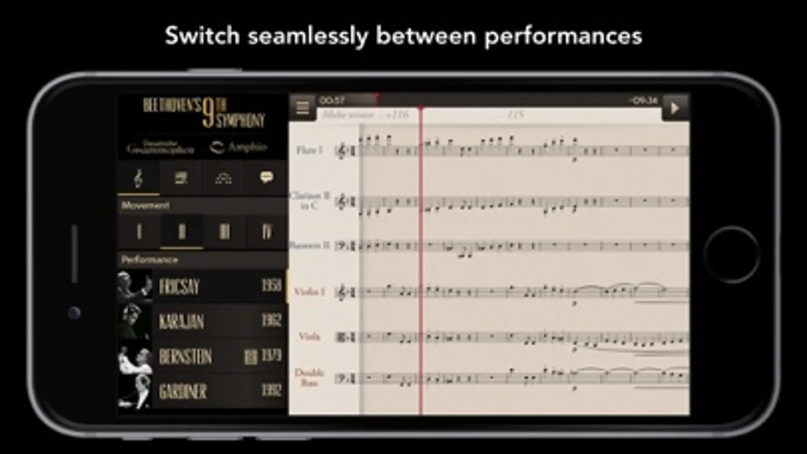 • Explore the music: Beethoven’s 9th Symphony lets you immerse yourself in Beethoven’s late masterpiece – follow the score or the 1825 manuscript, precisely synchronized to the music.