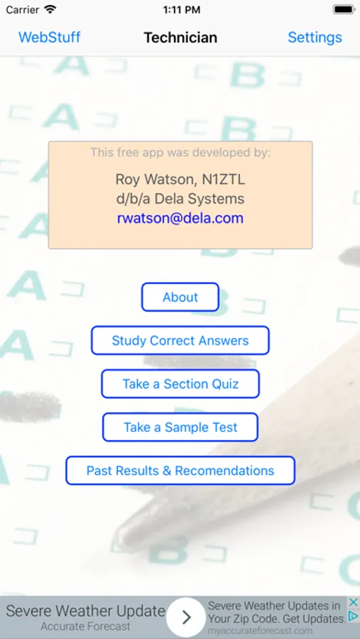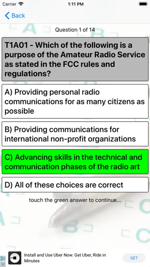 Ham Radio Exam allows the user to review the correct answers to the official pool of questions that will appear on their Technician license exam.