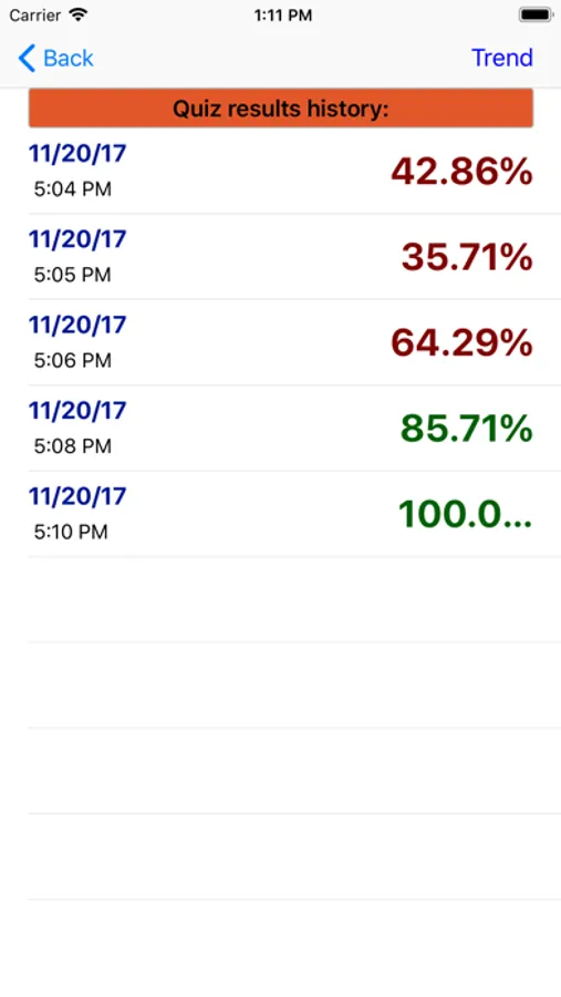 The users performance is stored so that the user can track their progress as they continue their preparations.