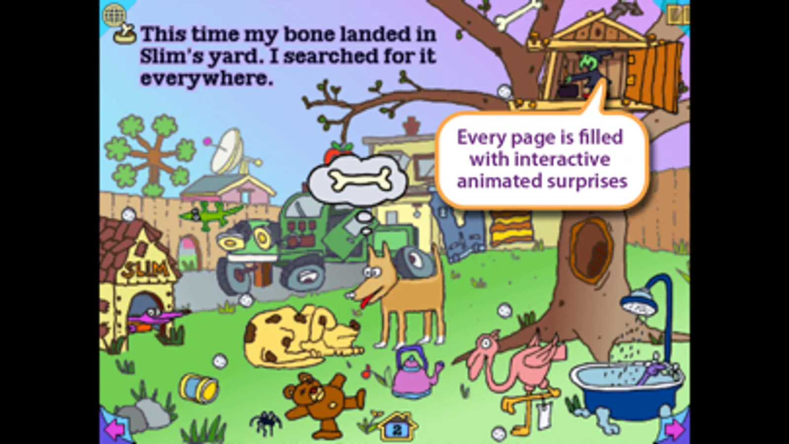 • A truly unique App that tells the story of Ruff's search for his bone, on Earth and elsewhere!