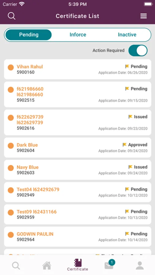 * Toggle the certificate list to view only certificates with outstanding requirements