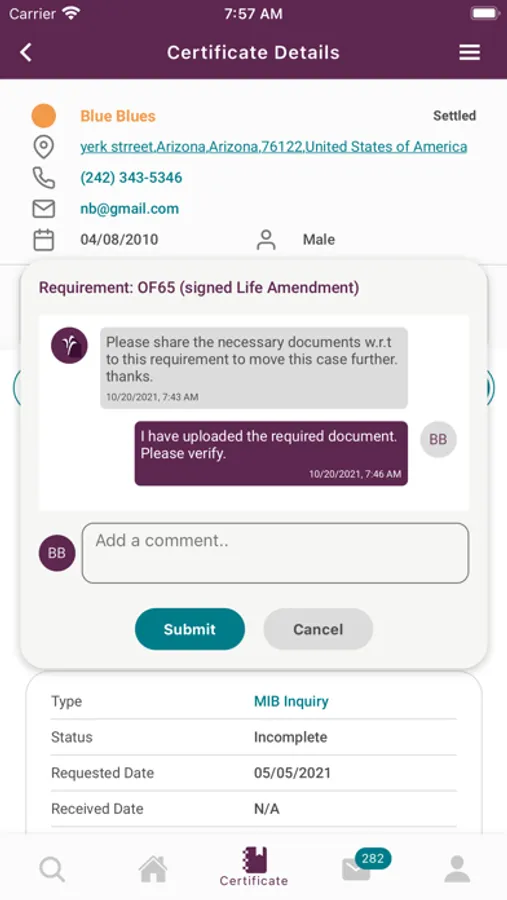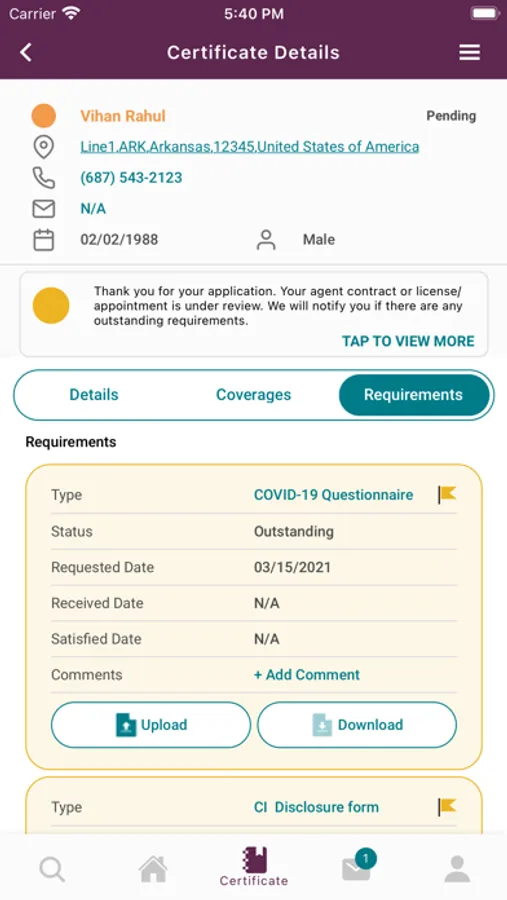 * View progress of recent application within individual certificate details and tap to see total process for application