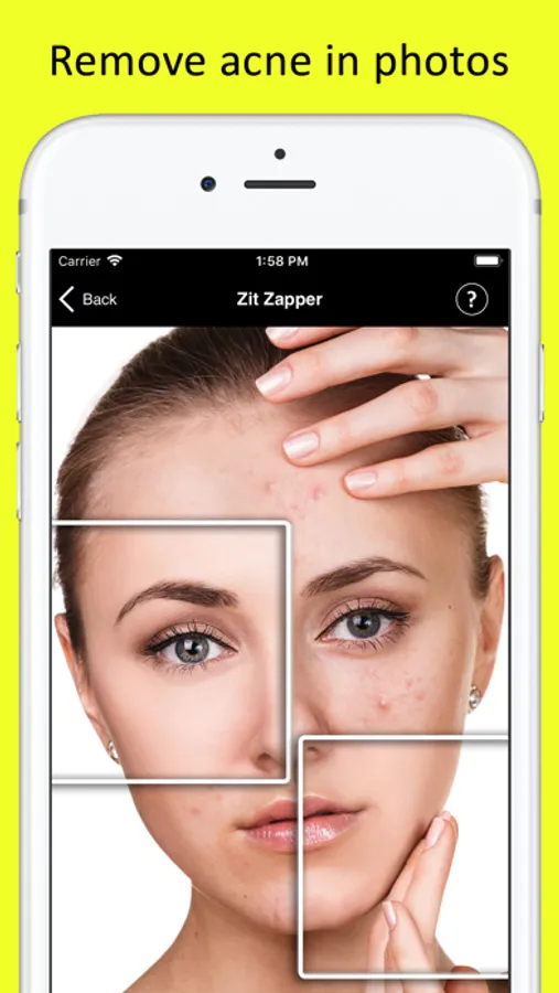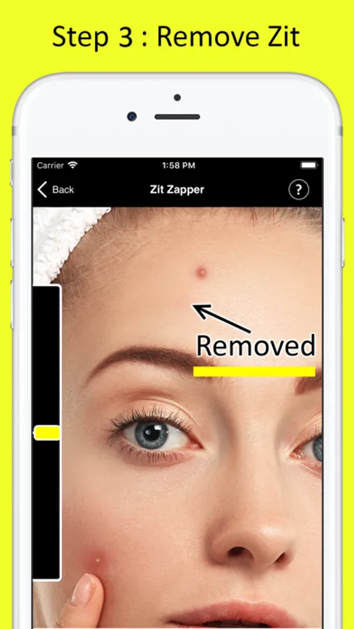 We use our skin copy and paste tool to allow you to target your zit and copy and paste over the skin with clear skin. The creates a flawless effect for removing pimples & acne. Unlike other products that just simply "BLUR" your photo, Zit Zapper carefully blends the skin to completely remove any kind of pimple or blemish.
