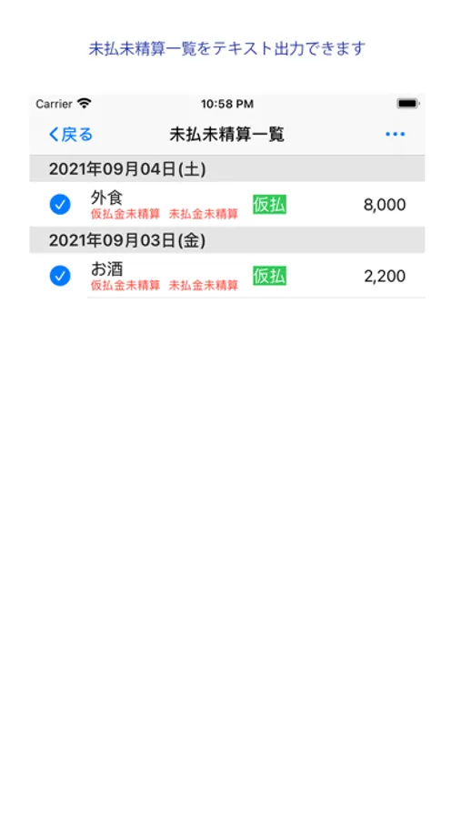 未払金の清算済みチェックや清算済み金額の登録も可能です。