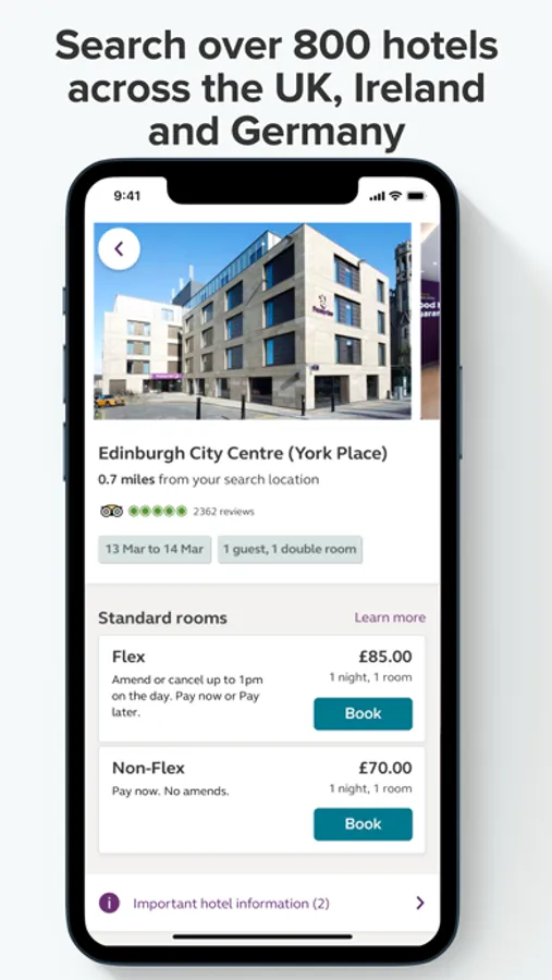 With over 800 hotels in great locations across the UK, Ireland and Germany, wherever you’re going you’ll find a Premier Inn close by. Whether you're staying for a fun family break or an all-important business trip, we have fantastic value rooms just a few taps away. The Premier Inn app is the fastest and easiest way to book your perfect hotel. Plus, booking direct via the app means you won’t find a cheaper rate anywhere else.