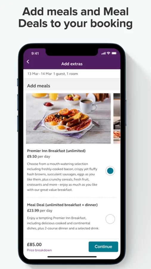 Check availability, book a room and add breakfast or a Meal Deal to your booking quickly and easily.