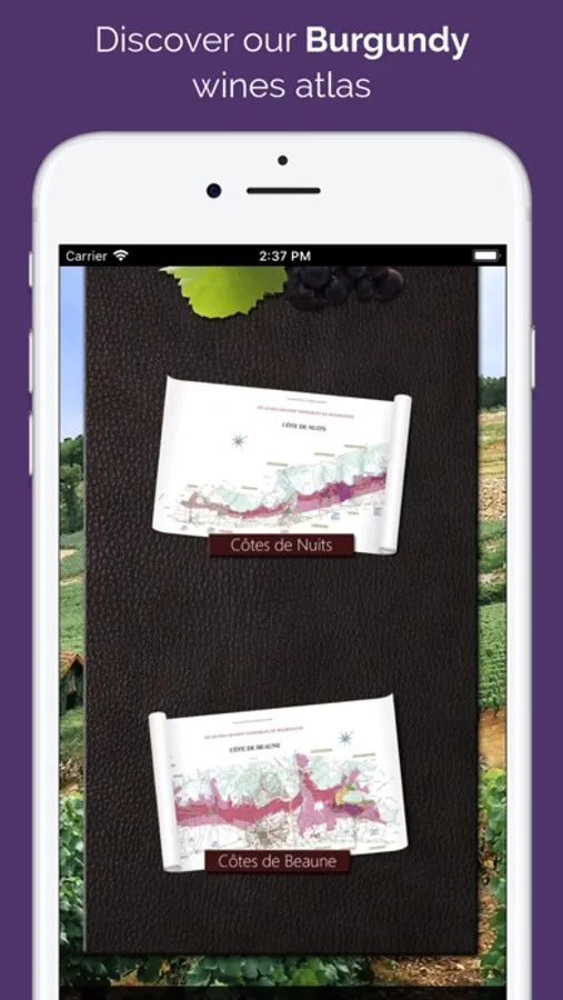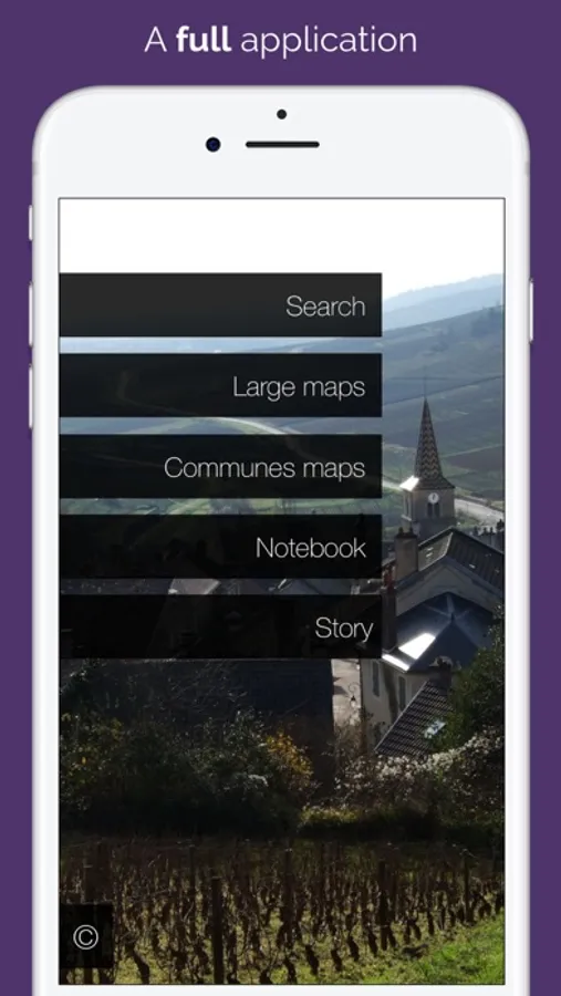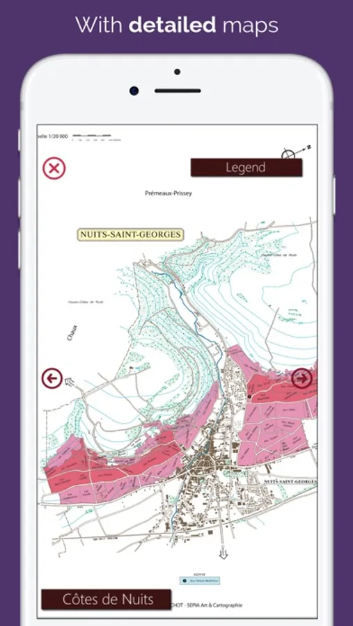 In the application, you will find interactive maps of the 1463 climates of Burgundy, which covers the terroirs and all the wines of Bourgogne.