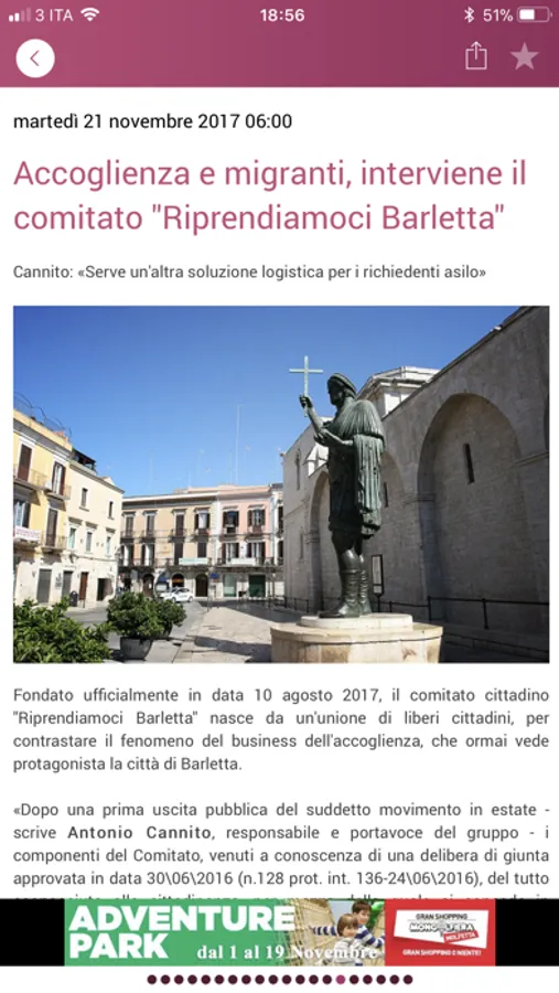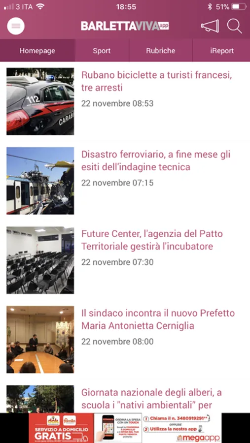 Notizie, video foto ed eventi su BarlettaViva, la nuova app di Barlettalife. Scopri i locali e i migliori ristoranti in città con le mappe interattive! Con lo strumento integrato è possibile inviare segnalazioni fotografiche in mobilità. Inoltre: contenuti iReport, previsioni meteo a Barletta, i contenuti più letti, le rubriche, lo sport.