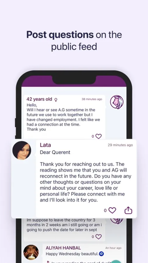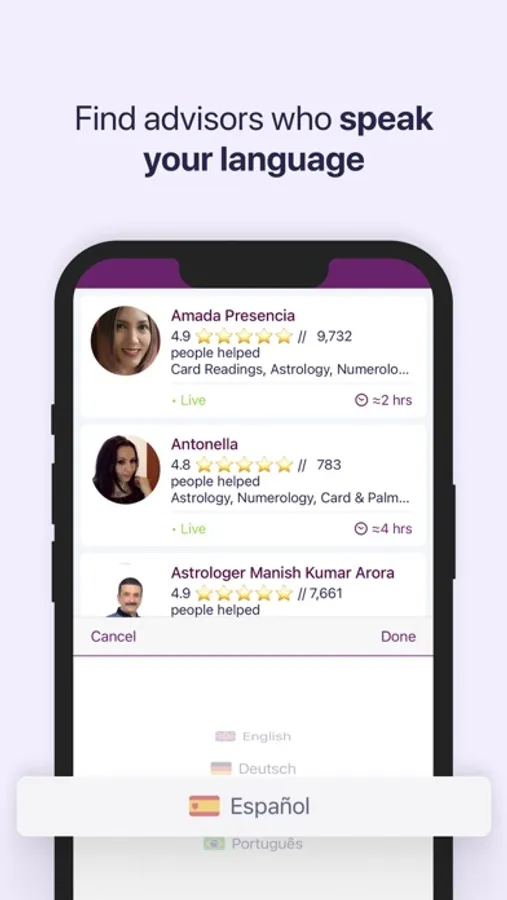 **** "Been using this app for 2 years with several advisors, always catered with predictions and you get quick answers 24/7. Considering the answers are coming from real psychics, prices are very low too." Sally P. – UK