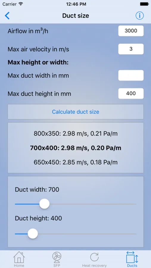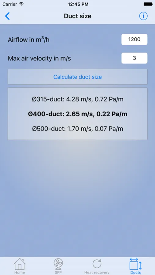 -Air velocity in ducts with known dimensions and airflow
