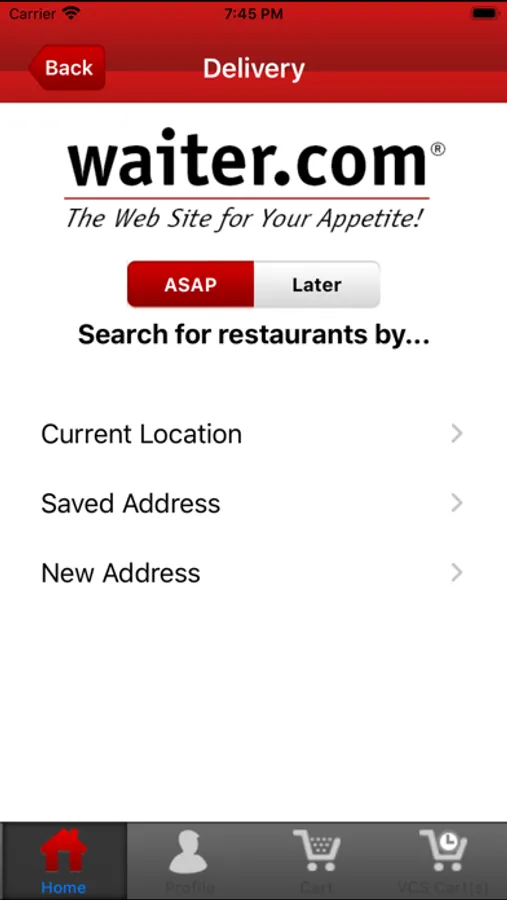 Waiter.com is the premier on-line restaurant ordering service for the hungry web surfer. Today, over 1300 restaurants nationwide are available. We offer delivery for restaurants that do not have their own delivery service. Tired of just Pizza and Chinese? Ordering from Waiter.com can help you discover new cuisines ranging from Japanese and Mexican to Thai and Caribbean for a family dinner or simplify the task of ordering lunch for a large office. Featured restaurants include Amici's East Coast Pizzeria, California Pizza Kitchen, TOGO'S Eatery, Max's Opera Cafe, Akane Japanese Cuisine, and BJ's Restaurant. All restaurants are searchable by location or cuisine.