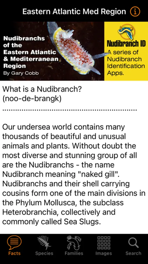This field guide will place right at your fingertips, anytime and anywhere, the most comprehensive collection of Nudibranch species to be found in the Eastern Atlantic and Mediterranean Sea Region.
