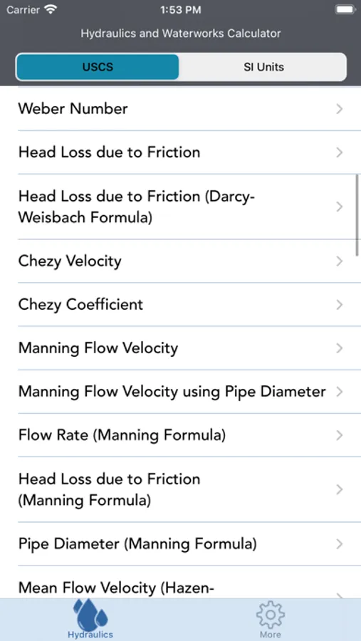 Hydraulics Calculator contains 94 Calculators and Converters, that can quickly and easily calculate and convert different Hydraulics, Water works and Civil Engineering parameters.