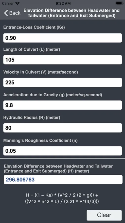 • Velocity of Flow in Culvert (Entrance and Exit Submerged)
