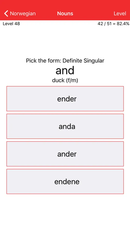 • Nouns: For those levels which contain nouns, a second module tests your knowledge of the endings each word takes in its definite and plural forms.