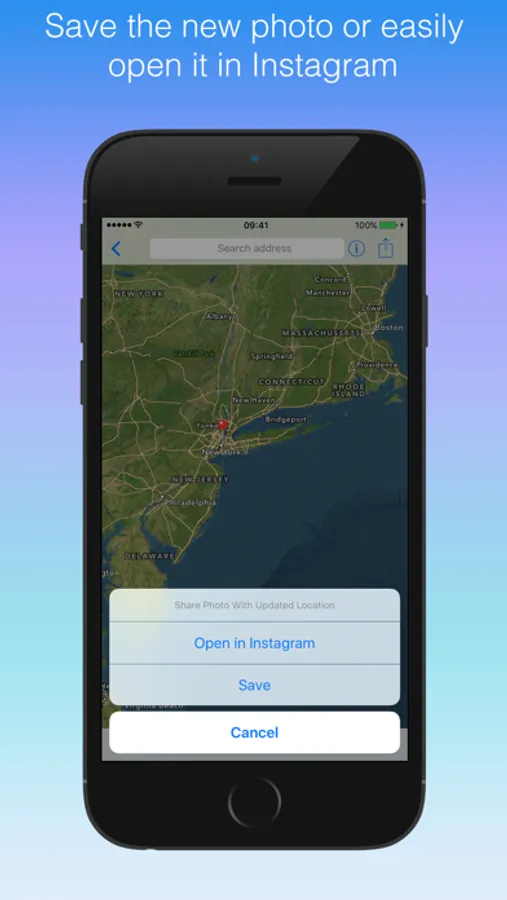 The simplest way to add or update the location of your photo right before you post it to Instagram. No Instagram? No problem, save the photo to your library and use it however you like it.
