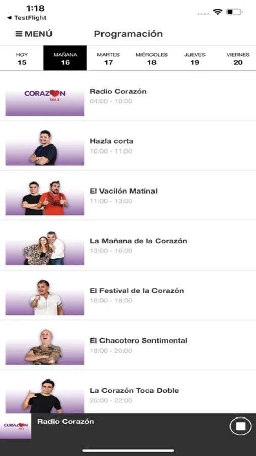 La radio n°1 de Chile ya llegó a tu Smartphone! Con esta aplicación lleva tu música y programas favoritos de Radio Corazón donde quiera que estés: en la pega, en el metro, en el norte o en el sur. Sigue las historias del Chacotero Sentimental, disfruta de la compañía de Leo Caprile y Pato Torres, y escucha las locuras de Julio Stark y la “Sita” Evelyn.