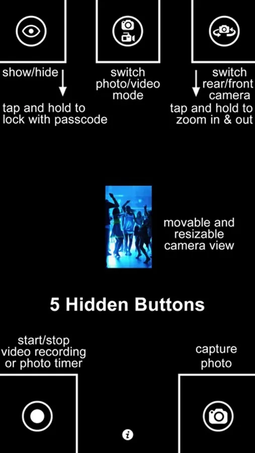 Want to capture photos and videos without anyone notices while your device can hide camera preview and all interface buttons, here is the app that you need: SP Camera.