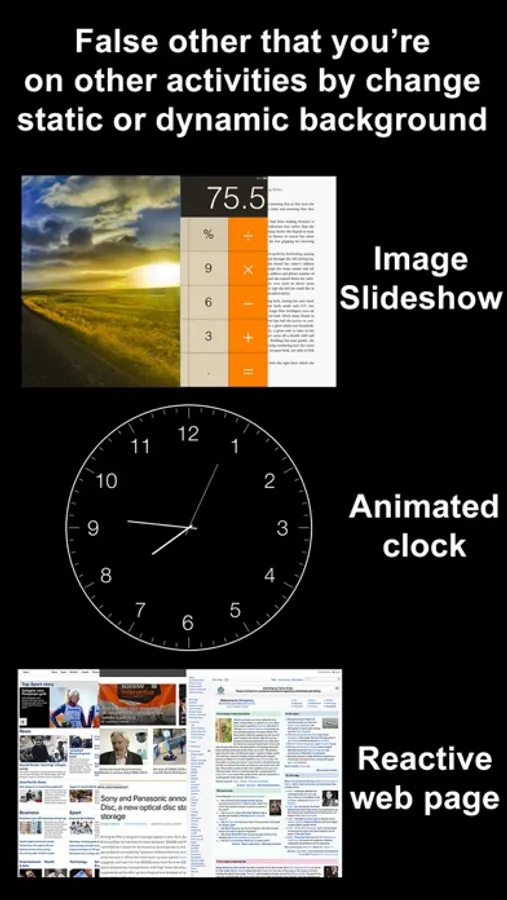 • Alternative image slideshow or animated clock or reactive web browsing backgrounds