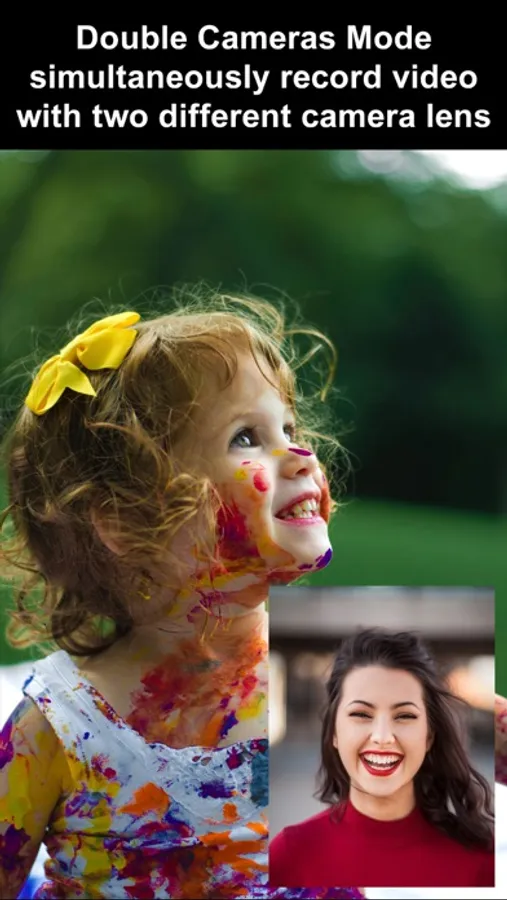 * Double Cameras: simultaneously record video with two different camera lens