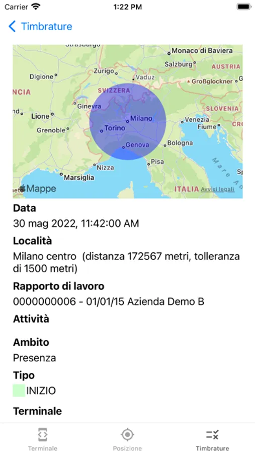 • Verifica della posizione e delle timbrature su cartografia Apple