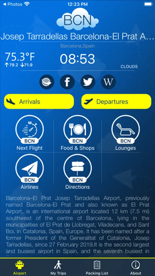 This app provides complete information for Barcelona Airport.