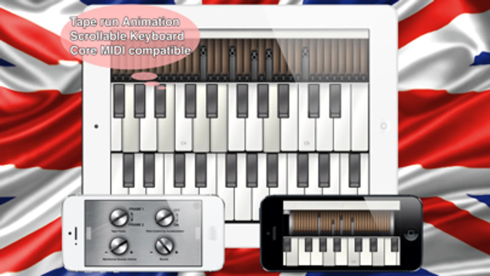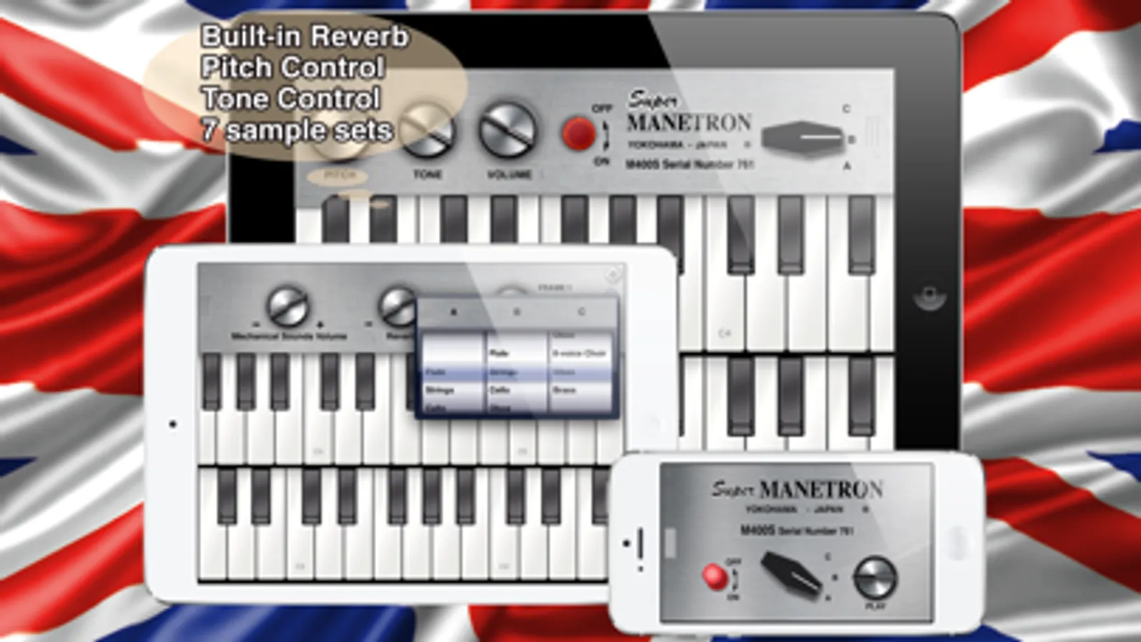 Super Manetron is the vintage tape sampling keyboard for iPhone/iPad/iPod touch. Genuine sound sampled from the most famous white body tape sampling keyboard model number of M400S (serial number 761) manufactured in the 70's. You can see an internal mechanism (tape running animation) and can enjoy with eyes and an ear. Feel the live experience the motor noise and inner mechanical sounds were recorded.