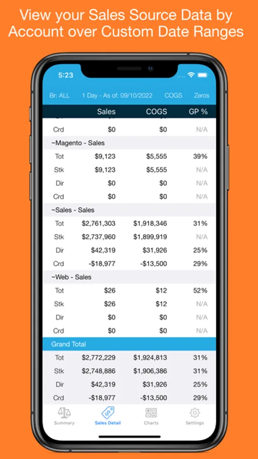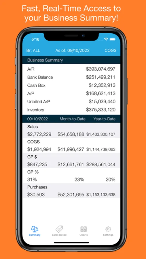 - Graphical representation of your Business Summary, GL detail & sales source data