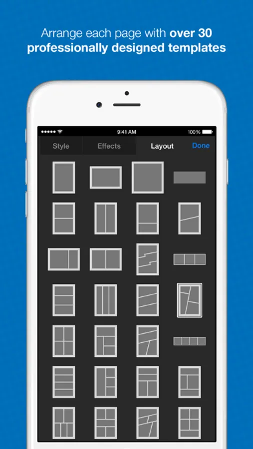 • Photos can be imported directly from your photo library, Facebook, and Flickr