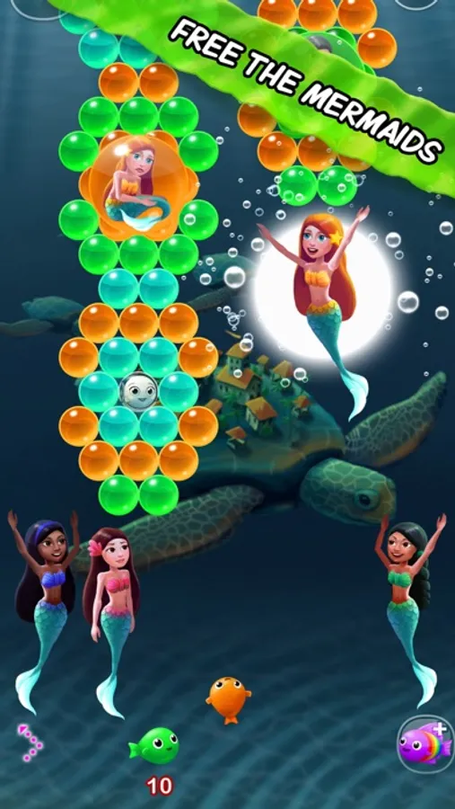 Bubble Fins is an addictive puzzle shooter for all ages. Aim and charge through bubbles to rescue the mermaids. Pop your way to victory by matching your fish's color with two or more bubbles of the same color.